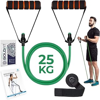Boldfit Resistance Tube with Foam Handles, Door Anchor for Exercise & Stretching, Suitable in Home & Gym Workout for Men & Women-25Kg-Green