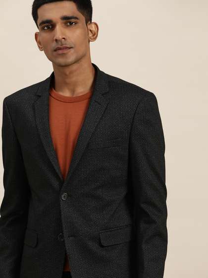 INVICTUS Men Black & White Printed Single-Breasted Slim Fit Smart Casual Blazer (36) by Myntra