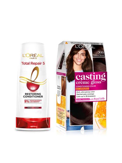 LOreal Paris Total Repair 5 Conditioner 180ml & Casting Creme Hair Color - Darkest Brown