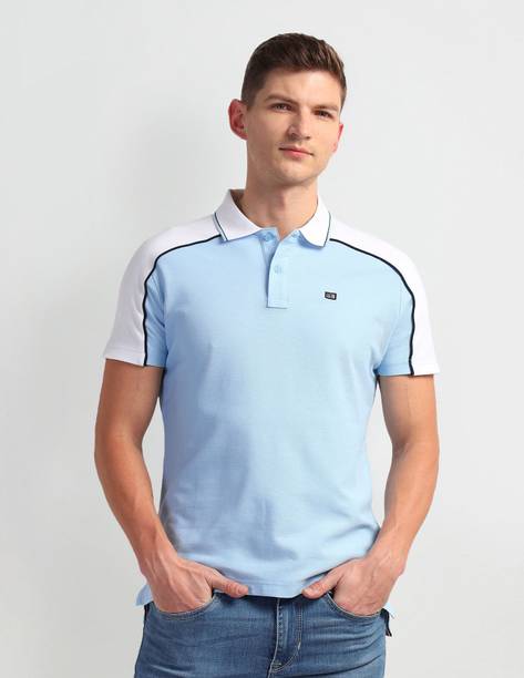 Men Colorblock Polo Neck Pure Cotton Blue T-Shirt